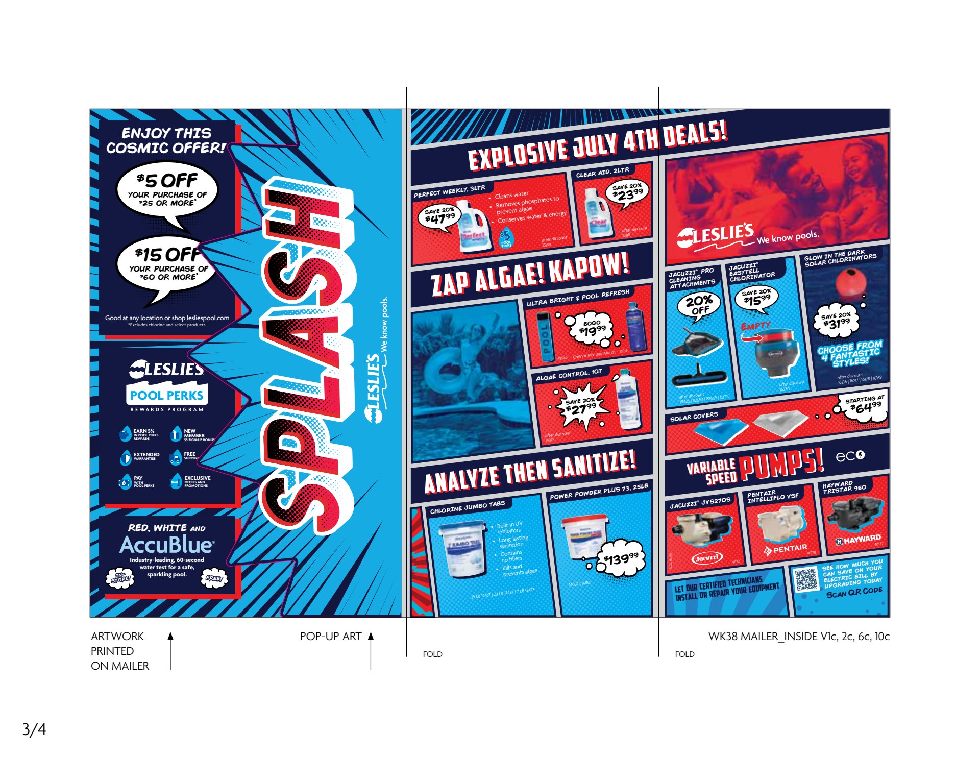 Mailers tend to be the most strenuous projects Leslie’s marketing team is faced with every year, and this year I was given the opportunity to take the reins on the 2021 July 4th mailer. Through careful planning and strategizing, I decided to take the mailer in the direction of a graphic novel theme. This theme is quite different from anything our brand has put out and allowed me to flex most of my design muscles. It took teamwork and a concise strategy to put this together, but the outcome was well worth the hard work. KAPOW!